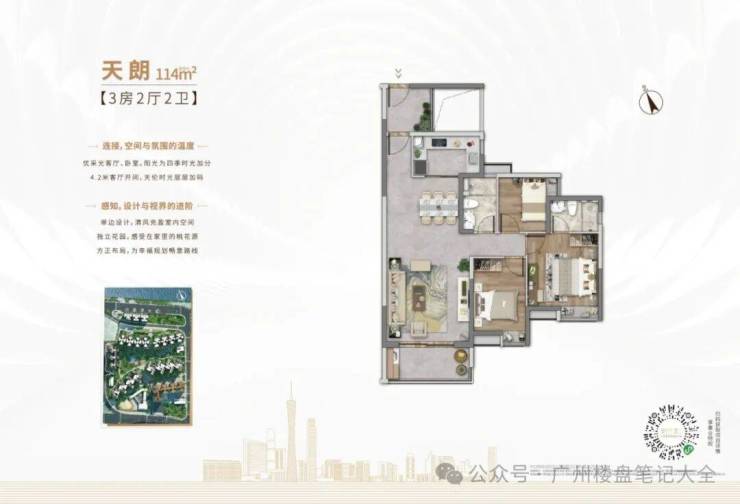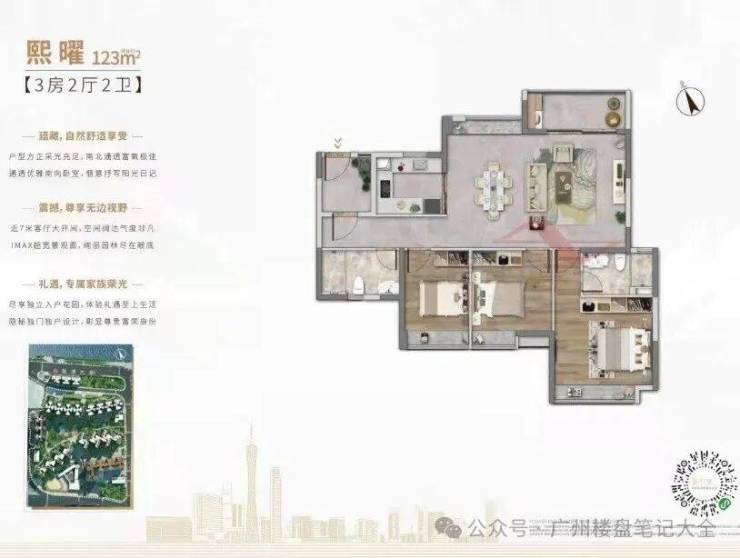 ● 114m²-123㎡实用3+1户型、独立入户花园、双景观主套三房