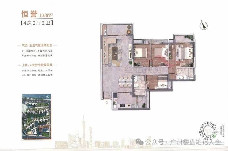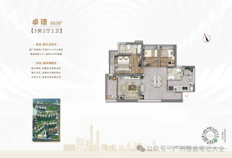 (1)95㎡三房两厅两卫——广州核心区绝版 南向主套三房