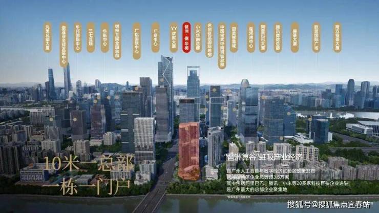 总部企业聚集地:琶洲西区致力于打造华南地区总部企业聚集地,已引进阿里巴巴、腾讯、小米等超25家总部企业,未来计划超50家,形成“10米一总部,一栋一门户”的规模效应。