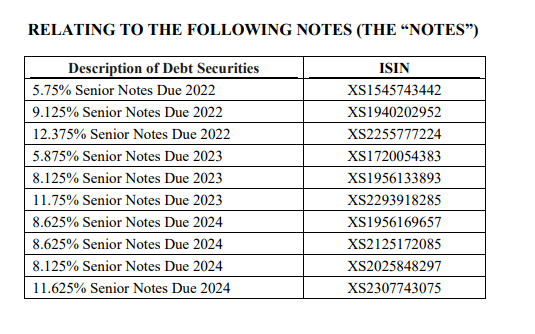 集团正向旗下10只美元票据的持有人发起同意征求