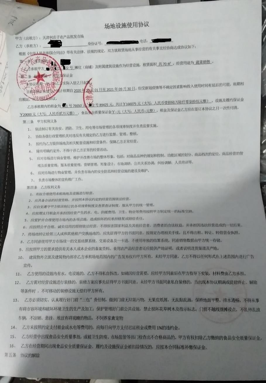 此前网友爆料了一份何庄子市场与入驻商户签订的租赁合同及收据,从该合同与收据的日期来看,何庄子市场出租的是上述违建板房。该合同显示,该违建板房70平方米的商铺一年租金为166075元。