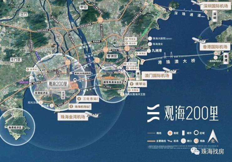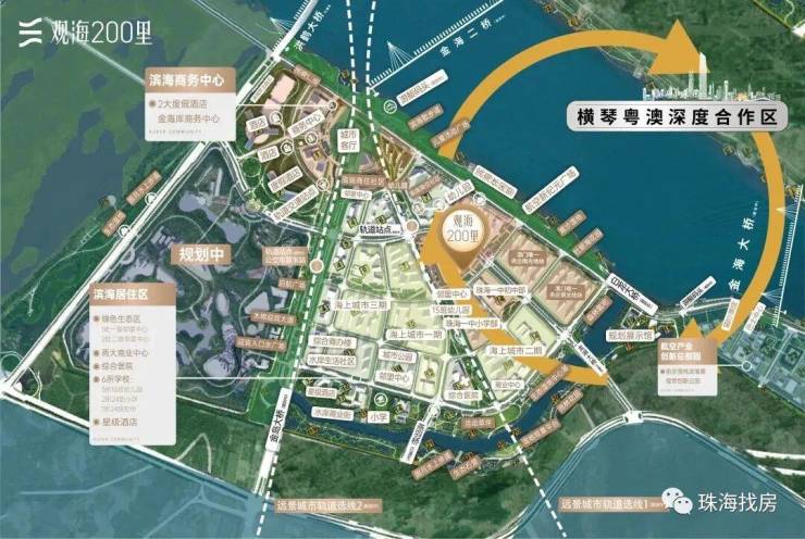 洪鹤大桥、金海大桥(在建中)、金海二桥(规划中)三桥连横琴,10分钟到横琴,24h通关澳门、香港;一站机场,10分钟全球畅达;紧邻未来轨道交通枢纽,1KM城轨站直通湾区11座核心城市。