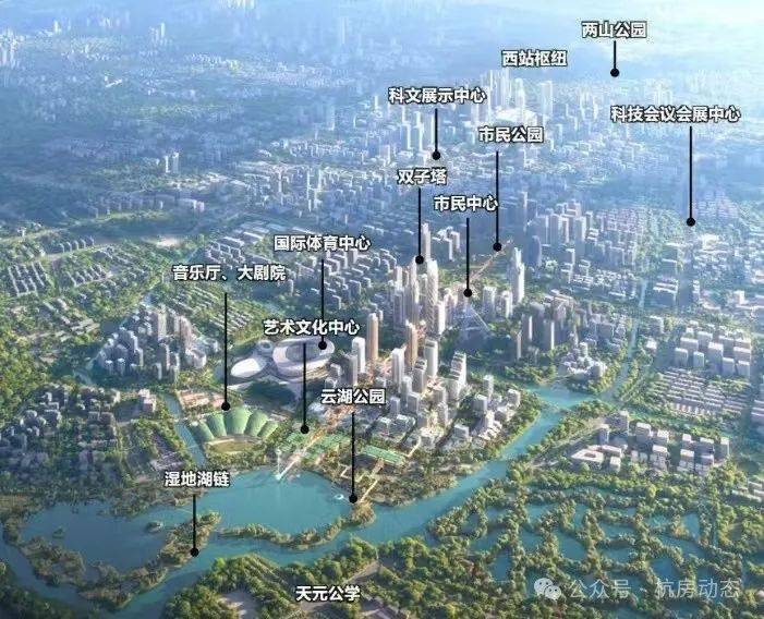未来科技城被誉为中国经济引擎,杭州新中心,区域内注册企业涉及人工智能、芯片、数字经济、生物医药等高精尖科技产业。代表性的有阿里巴巴全球总部、菜鸟总部、之江实验室、海康威视等等。吸引顶尖人才集聚于此。闲湖城距离杭州未来科技城公共中心直线距离约3.5公里。