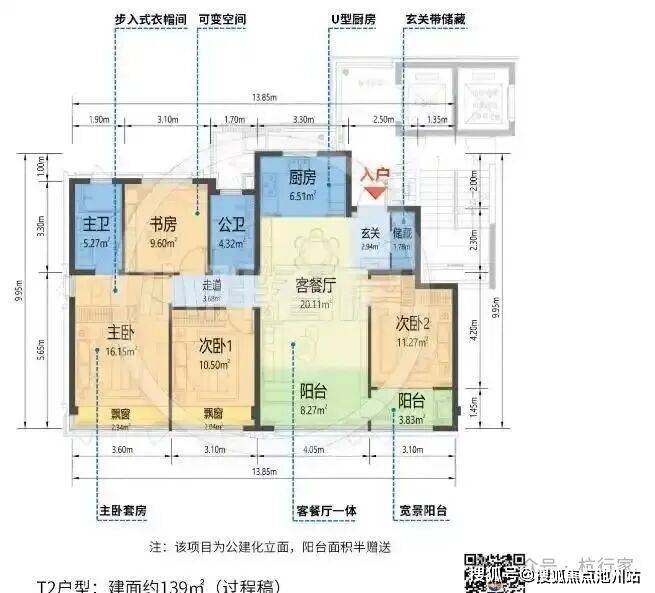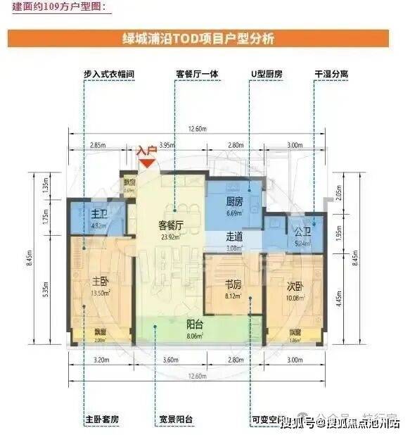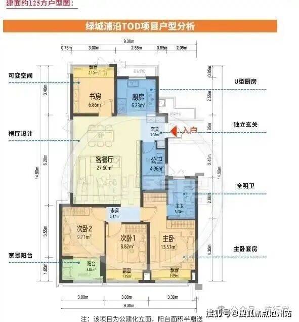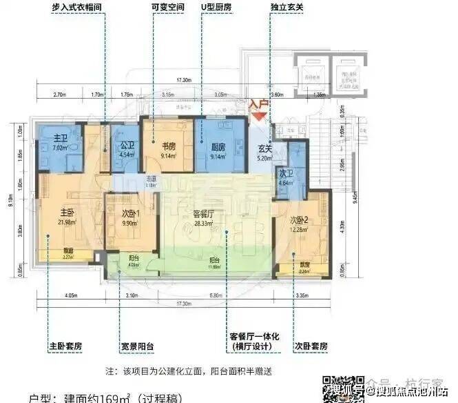 105㎡:LDKB一体化,6.8米双联阳台,得房率约82%23