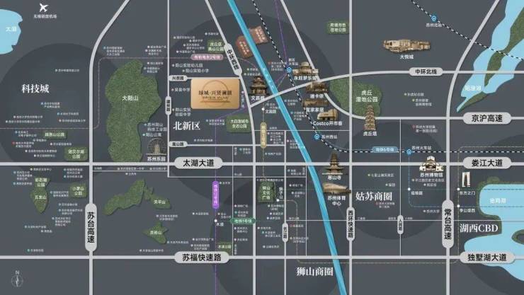 选择这里,首先是选对了板块。浒墅关是新区北部的中心,历史悠久,底蕴深厚。项目周边被丰富的生态资源环绕,大阳山国家森林公园、京杭运河、树山风景区就像你家的后花园。出门也非常方便,无论走高架、高速,还是去高铁站、机场,路网都很发达。日常生活所需,从家门口的兴贤商业广场,到永旺、开市客、宜家这类大型商业,都能轻松抵达。孩子上学有从幼儿园到高中的全龄段学校,家人健康也有苏大附二院这样的优质医疗资源保障。周末想逛逛,文昌阁、浒墅关大码头这些充满人文气息的地方就在不远处。