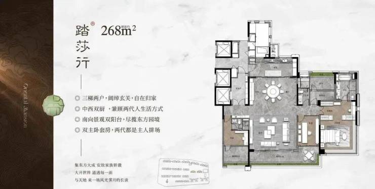 我们再来看看此次加推的268平的大面积户型,作为项目的旗舰,暗藏着哪些巧妙的设计?
