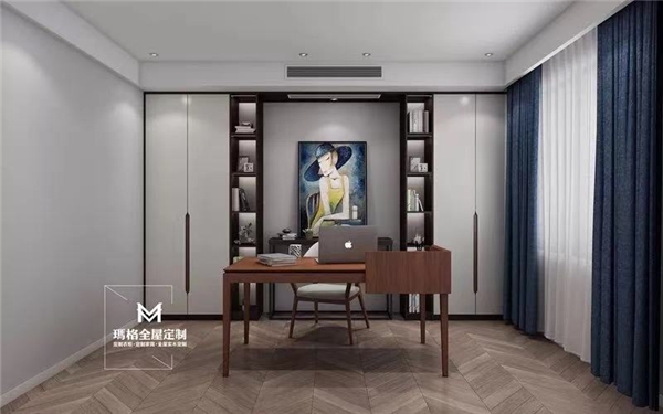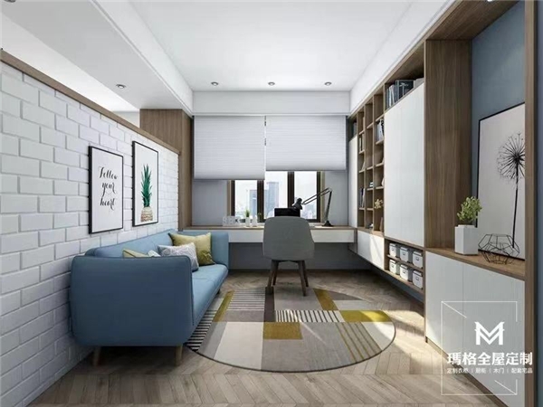 一般来说,书桌分为独立书桌和柜桌一体化,书桌设计比较讲究,会根据人的身高,来定制桌面的高度,定制时较好找专业的设计师上门量尺寸。而书柜也有相对应的标准尺寸,书柜的层高不应小于30cm,宽度不小于21cm;如果书柜的设计是封闭+开放隔板,易碎物品、重物、易晃动的物品等不宜放在高处隔板,不然容易造成安全隐患。
