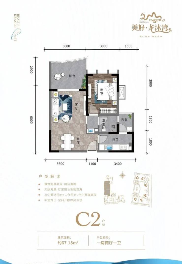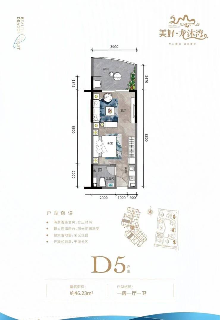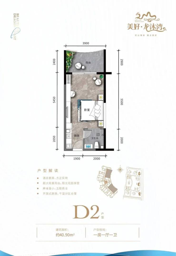 ① 开间户型独立明卫,各功能区域俱全,瞰景阳台,超大景观面宽