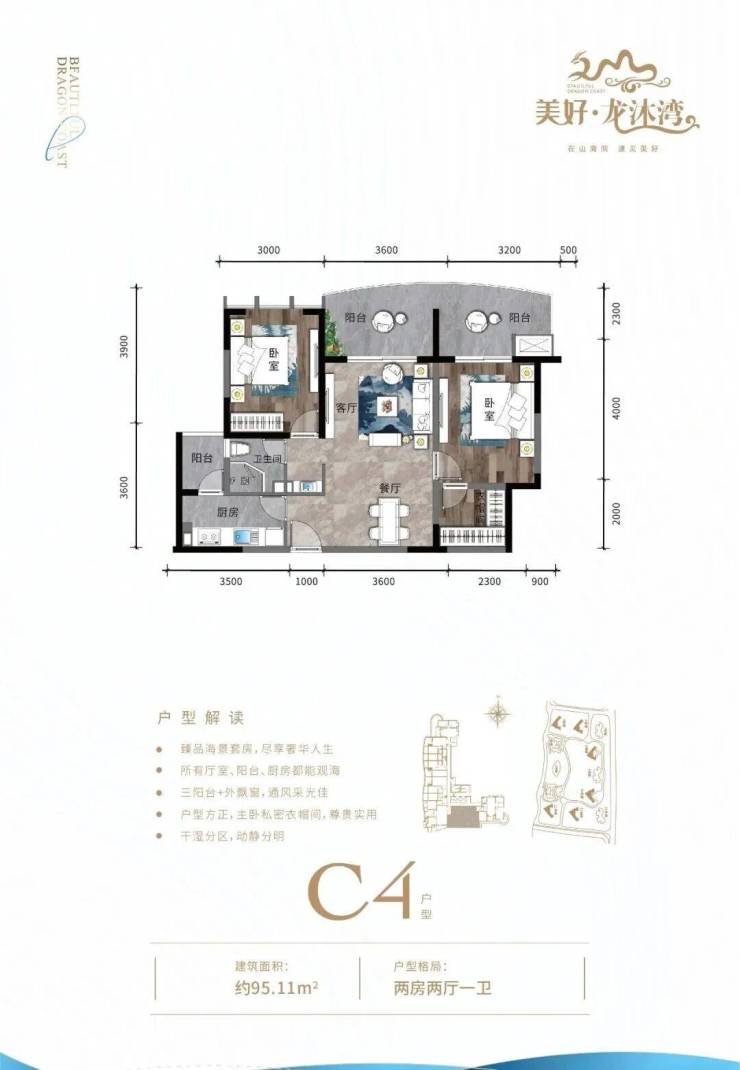 ③ 二房户型空间方正,独立衣帽收纳系统,双阳台加270°瞰海设计