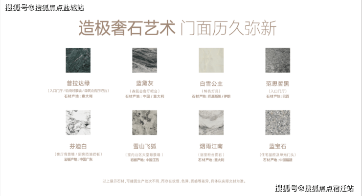 住宅基座及单元门头使用蓝宝石石材;森氧会客厅吧台使用兰黛灰。