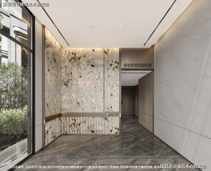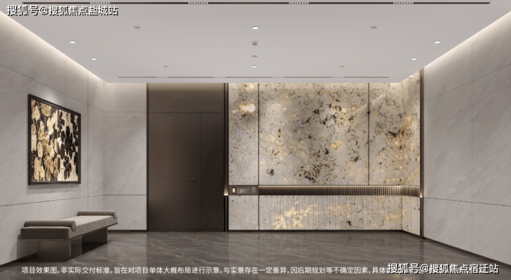 比如,高定地下入户大堂,延续首层入户大堂材质高标,精选雪山银狐天然透光奢石,气质一下子进阶到「明星」款。