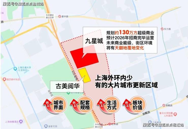 何况,古美周边强邻如众星拱月般环绕,徐家汇、莘庄、虹桥、七宝等产业人才源源不断输入。