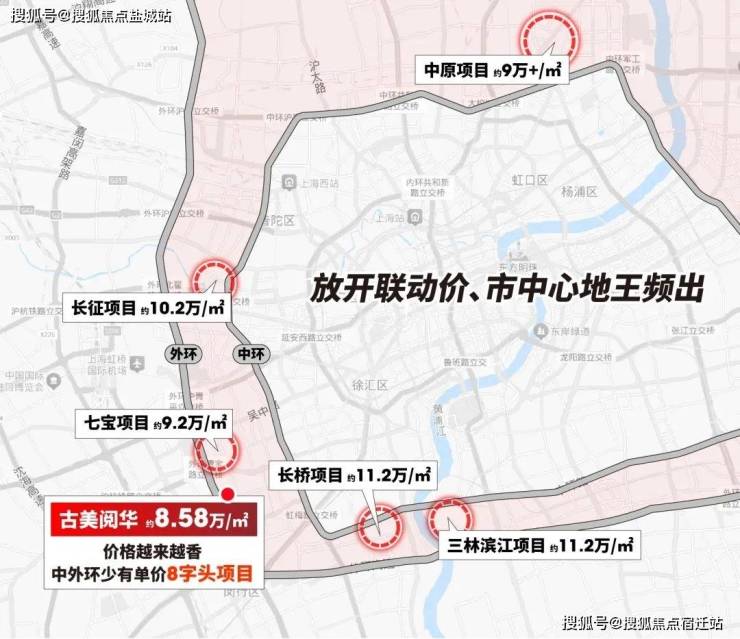 且现在趋势就是联动价放开,市中心曹家渡、徐汇滨江接连出现地王,未来外环内新房价格会越来越高,古美阅华约8.58万/㎡的含金量显而易见。