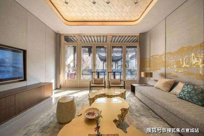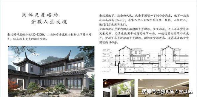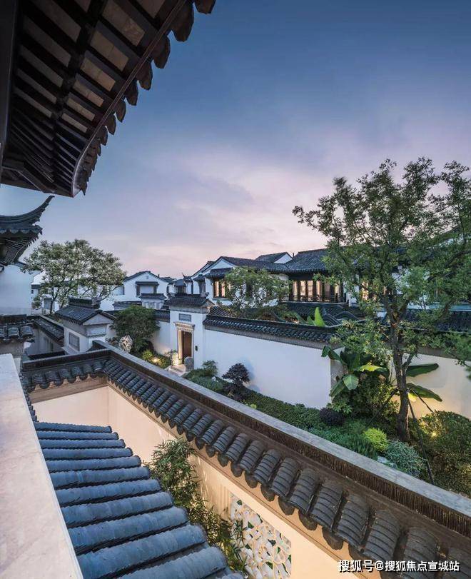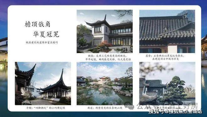 同时,建筑采用宋代宫殿,建筑出檐宽广,檐下增加斗拱、镂空雕花、甘蔗脊、阑额等元素,约2/3宅园设置入户连廊,为全国之最,雅贵造极。
