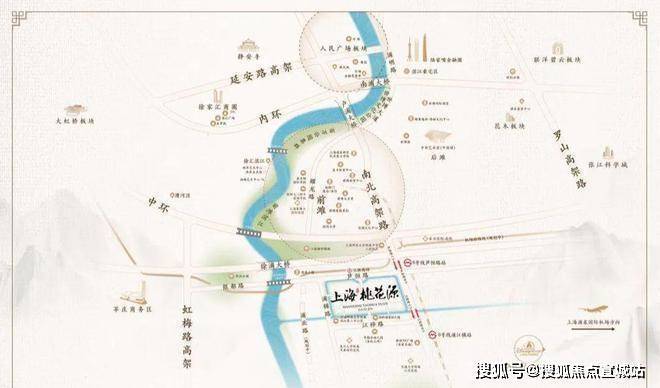 上海桃花源的择址,与传统市中心人民广场在南北中轴线上,由济阳路快速路、中环、外环以及各大隧桥快速连通市区,这是项目出则繁华的基础。