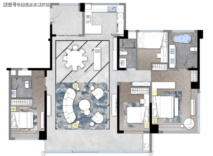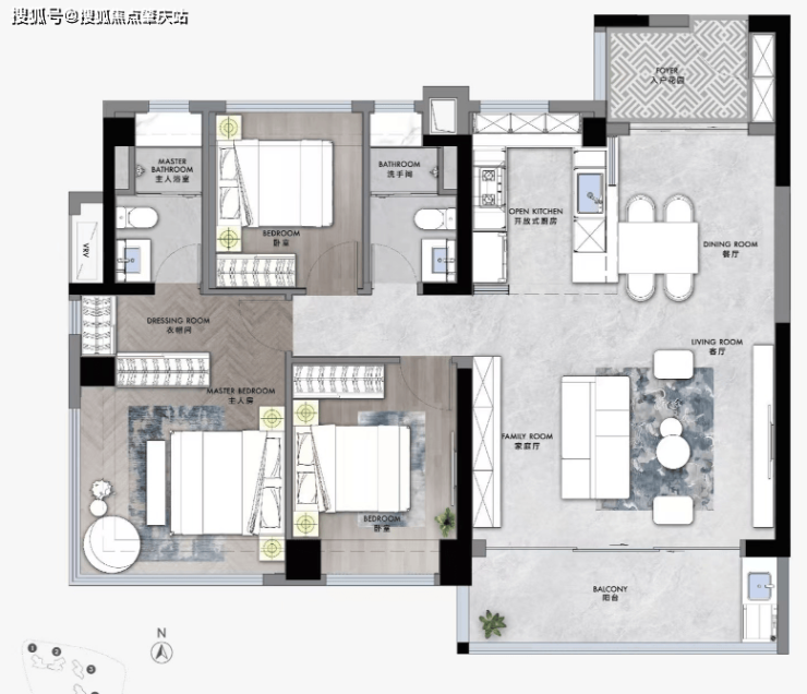 双套间设计,长幼分区,转角270°环幕落地飘窗