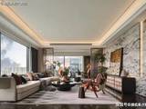 项目各处细节采用蟒水纹凸显尊贵,择取中国传世名画北宋王希孟的《千里江山图》中的青绿之韵原色,点缀在公区的软硬装材质中,更彰显东方传承意韵之美。