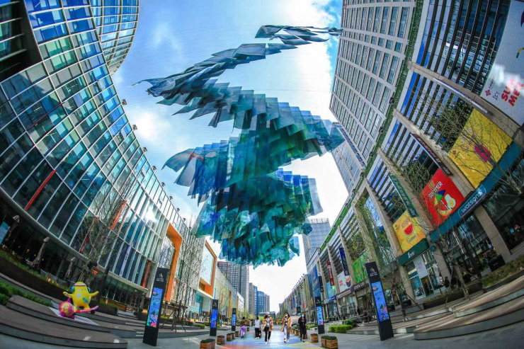 去年8月,依托中央美术学院、中央美术学院城市设计学院、中国公共艺术中心等学术力量,望京小街开展了“城市亲历”等公共艺术课题实践,充分运用新媒体技术,结合空间构造,打造了一场艺术审美性与体验性俱佳的“2020云毕业季”线下作品展。