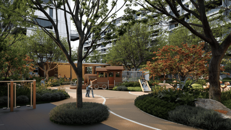 包含儿童活动区、海宝农场种植区、康体健身区等多种功能空间,构成全龄共享的活力场域,在这里,孩子们可以在尽情游乐、自由探索、亲近土地,让成长在自然的包裹与乐趣中悄然发生。