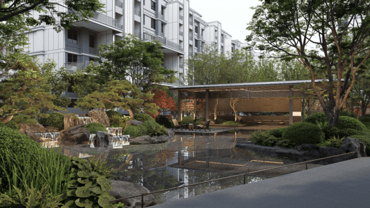 如果说“沁”是项目的灵魂与神韵,那么“园”便让这份意境能真正安放下来、让人能走进其中、亲身感受的实体。