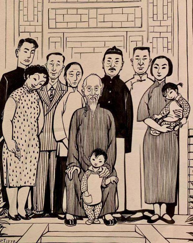 在中国美术馆一楼的展厅中,有这样一幅70-80后观众都非常熟悉的《四世同堂》画本正在展出——这是由丁聪先生为老舍小说《四世同堂》创作的绘本,如今被中国美术馆完整地展出了。
