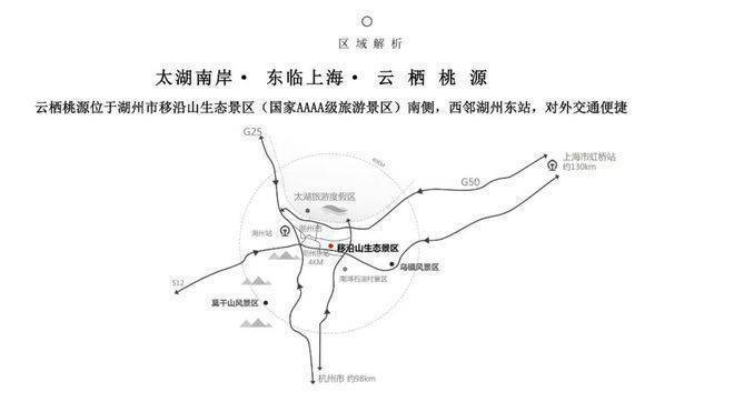 三、以项目为中心,辐射1小时游玩范围,有太湖旅游度假区、南浔古镇、湖州长颈鹿庄园、西山漾湿地公园等,涵盖了自然、文化、亲子、休闲等多种类型的游玩地点。