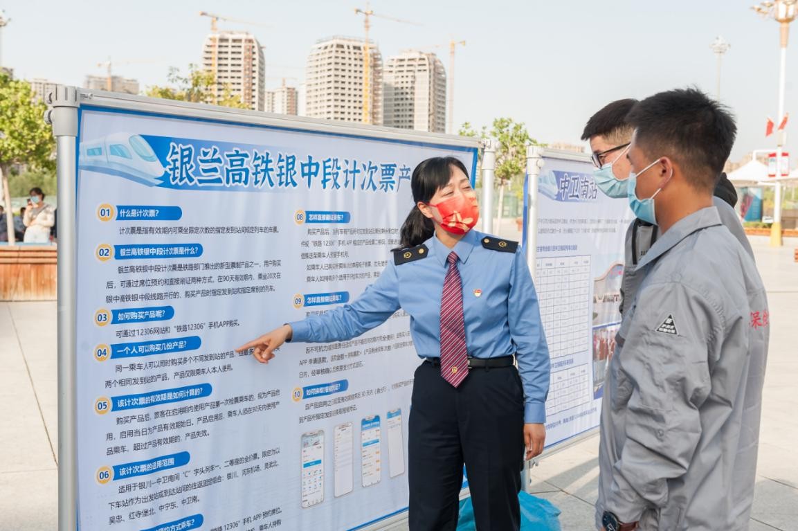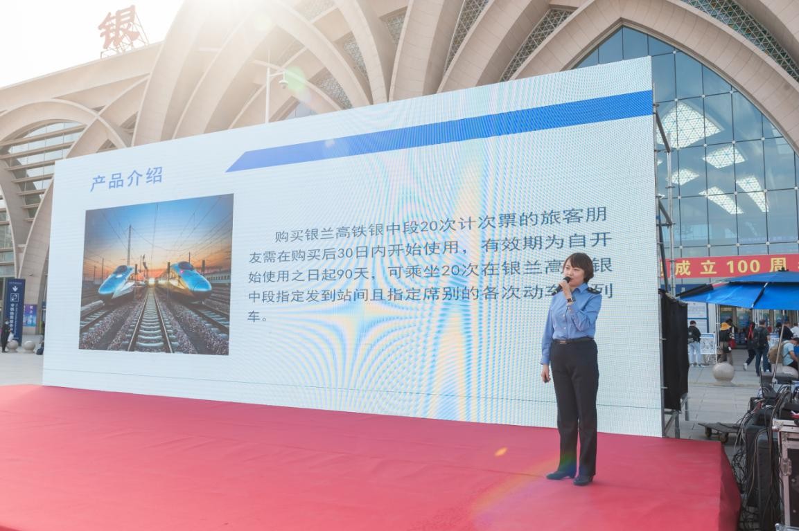 此次推介会在“国庆”小长假和2021年全国铁路第四季度调图前夕举行,推介会上,来自银川车站、河东机场及宁夏铁道国际旅行社的同志,分别向参会人员、来往旅客介绍第四季度调图后银西高铁运行情况、银西高铁计次票使用