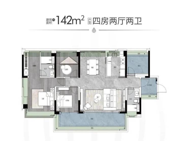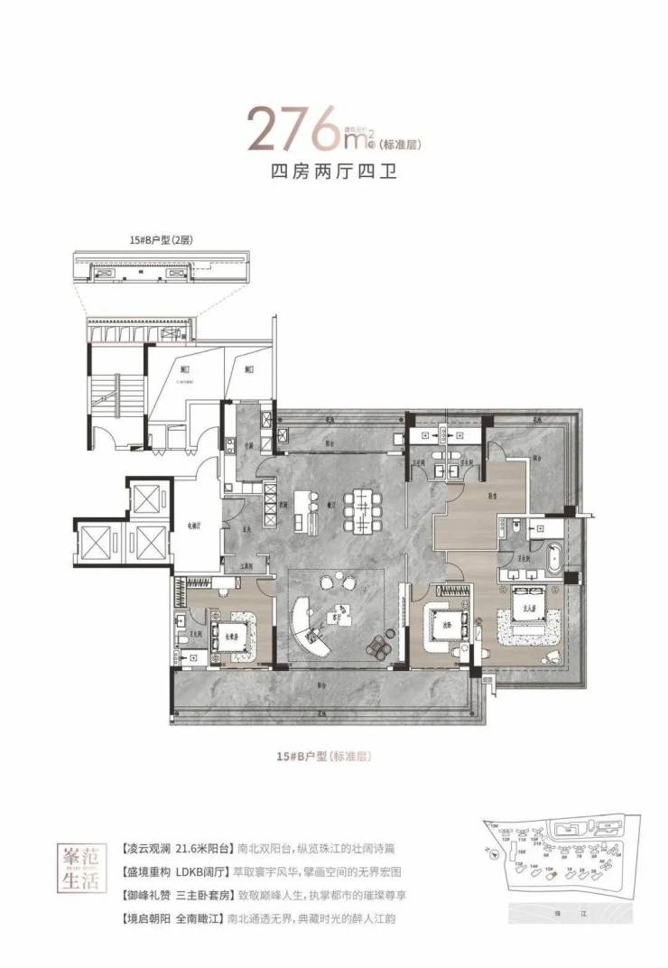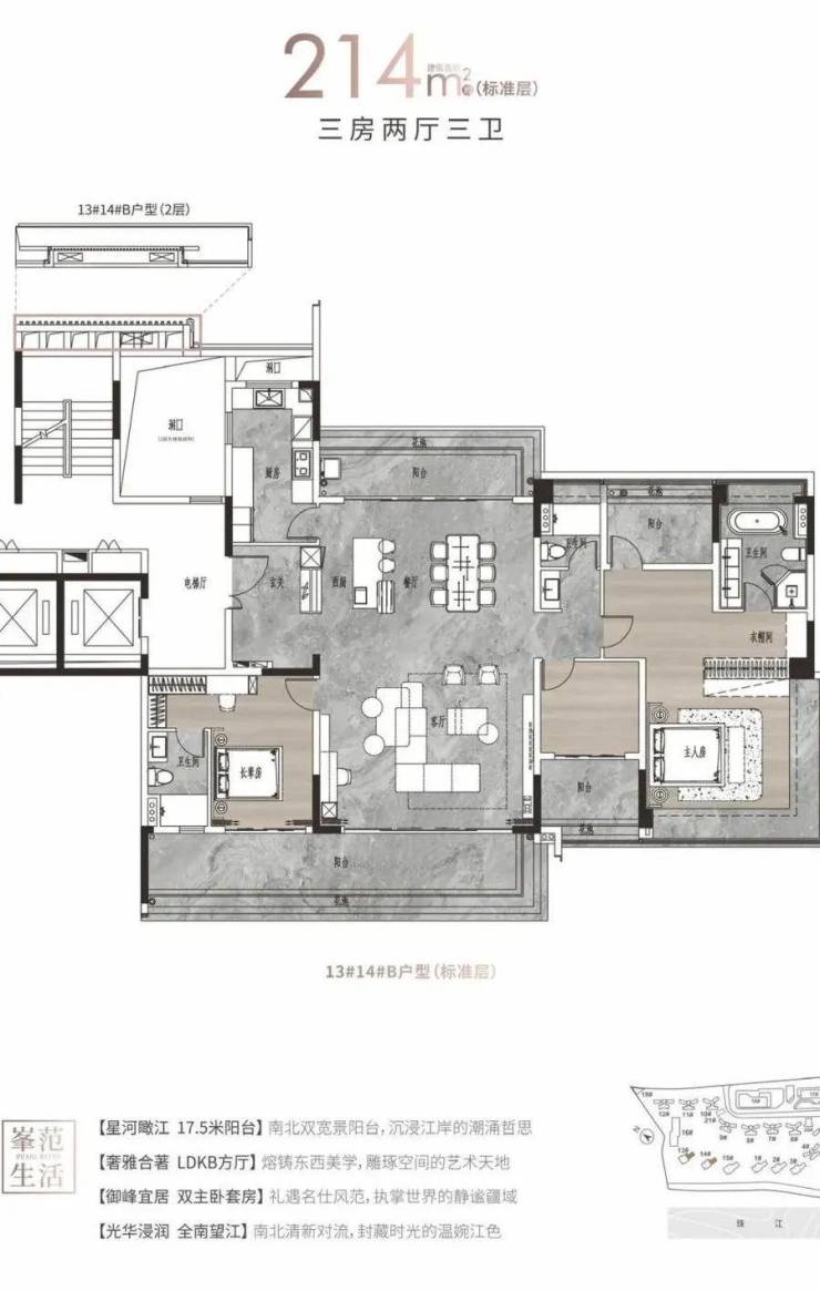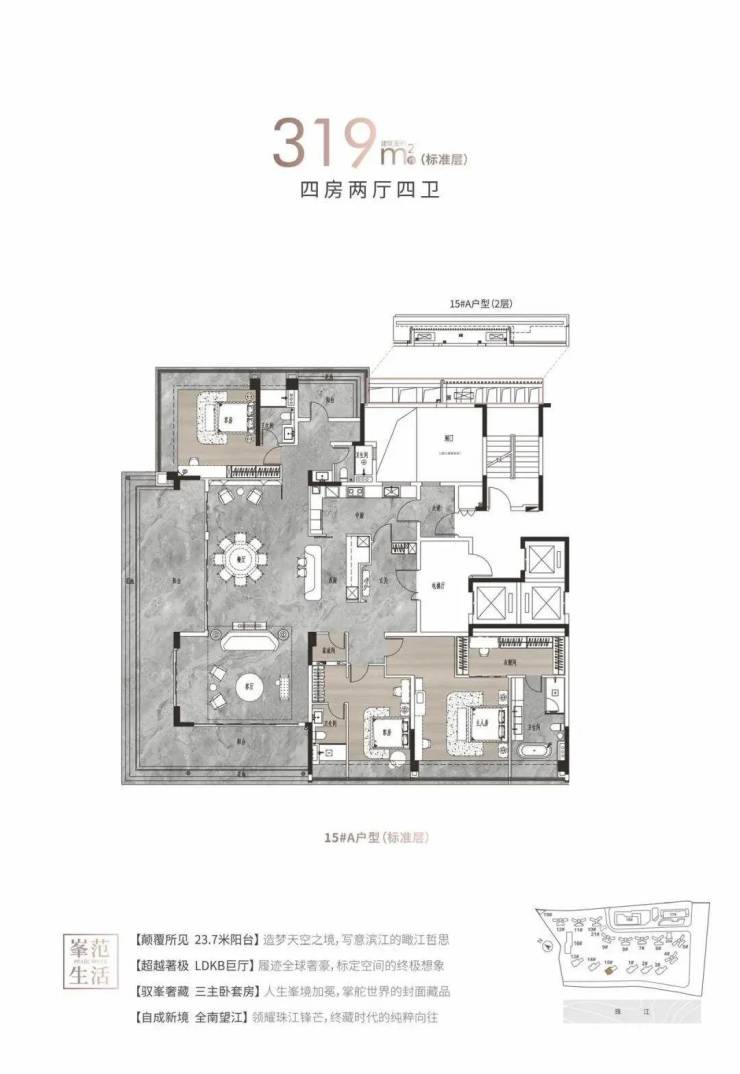 户型面积:约125-142㎡四房两厅两卫/214-313㎡大平层