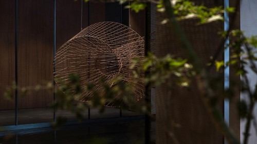 承袭文化,是探寻也是解惑和思考。双十字纹作为两汉文化与现代文明的载体,或灯或屏或饰,以多变而归一的方式,延续这份弥足珍贵的文化命脉。特别是隔断借景的屏风,在绽放的空间中,犹抱琵琶半遮面,暮色之中,亦是亦非。光的进来,在带动整个空间质朴的触动。身心的完全进入,渲染对空间的喜爱。