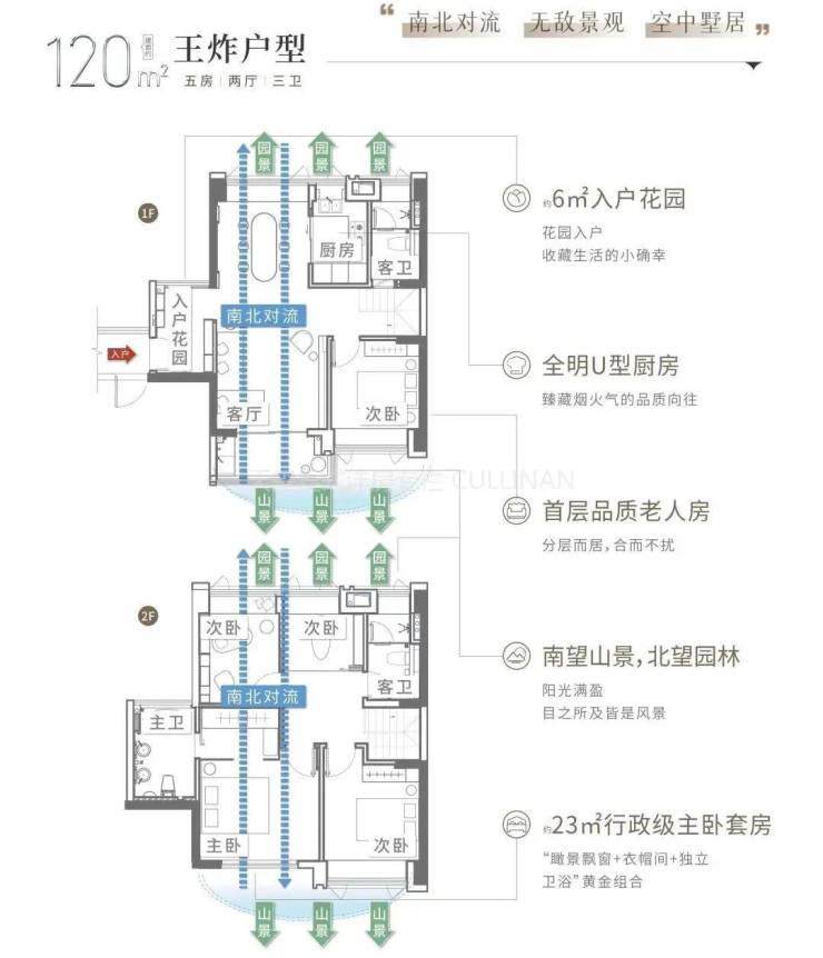 洋房主打 85 - 120㎡的 4 - 5 房复式,实用率超 120%。别墅会馆有使用面积约 330 - 680㎡的院墅产品,仅 30 席,有天有地有花园,配私家电梯和多重功能空间,满足高端社交需求。【别墅户型】别墅会馆涵盖使用面积约330-680㎡院墅产品,全盘仅有30席。这里的每一户,都有天有地有花园,还配有私家电梯、多重功能空间,私密性、安全感直线拉满。多层丰富空间,书房、酒窖、观影室、大客厅...满足多层次的功能需求。出入这里的人,不是时代巨子,就是商贾贵胄,闲谈话语间,真正实现“谈笑有鸿儒”的社交理想。