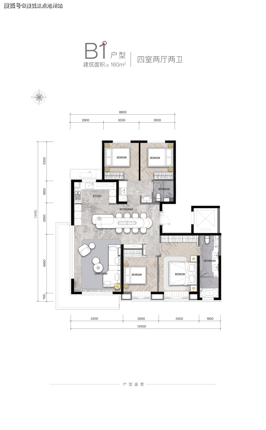 全四居终极改善类产品,南北通透,户型方正,一梯一户,私享空间;