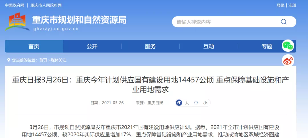 聊楼市,就离不开土地供应,最近的楼市火爆,很多人担心重庆今年的土地供应跟不上,较新的消息来了,重庆市在上周3月26号,正式发布《2021年国有建设用地供应计划》(下称《供地计划》),2021年全市计划供应国有建设用地14457公顷,较2020年实际供应量增加17%。