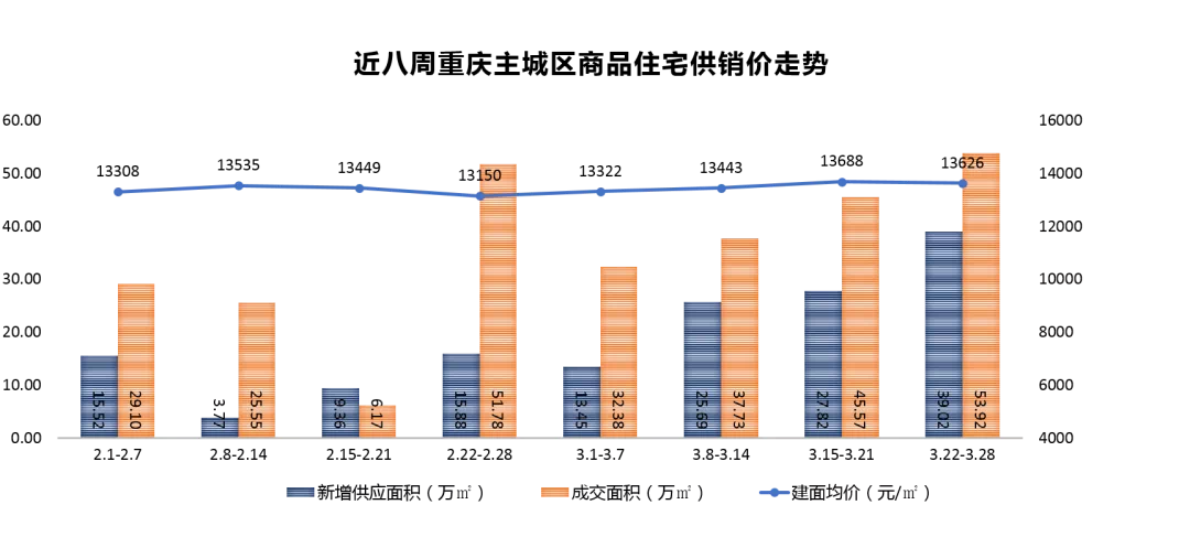 根据铭腾机构的数据,上周重庆新房依然供给小于需求,重庆商品房市场供应44.88万方,成交70.00万方,建面均价11486元/㎡,明显成交大于供应量不少。