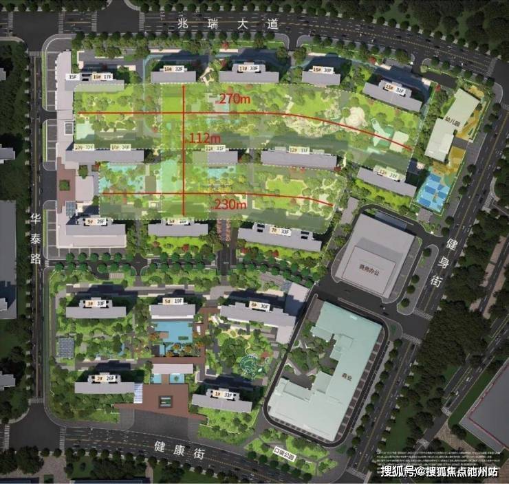 · 全龄户外健康乐动系统,约500米跑道/篮球场/双羽毛球场/大型儿童游乐场/萌宠乐园等