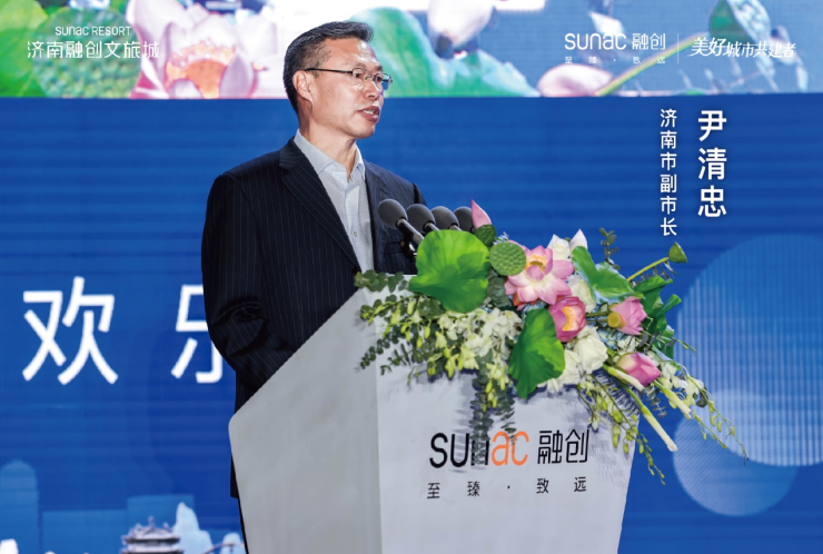 开城活动现场,济南市副市长尹清忠在致辞中表示,文化旅游是衡量社会经济生活,人民生活质量水平的重要标志,同时也是拉动消费,满足美好生活需求的重要的举措。济南南依泰山,北拥黄河,是著名的历史文化名城,以“海右名城,齐鲁雄都”名扬天下。发展文旅产业,无论是从济南的过去、现在和未来都具有得天独厚的优势和条件。济南融创文旅城竖起了泉城文旅融合的新地标,开拓了济南以至山东和周边人民美好生活的新空间,将对提升济南带动周边的省份的文旅产业具有重要的引领作用。