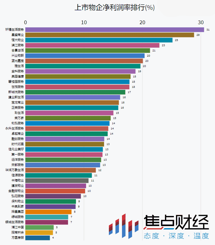 焦点财经发现,营收及规模优势并不能成为净利润率的少有决定性因素,反而进行创新和其他领域投入的“小而美”物企在净利润率排名当面赢得了更多主动、