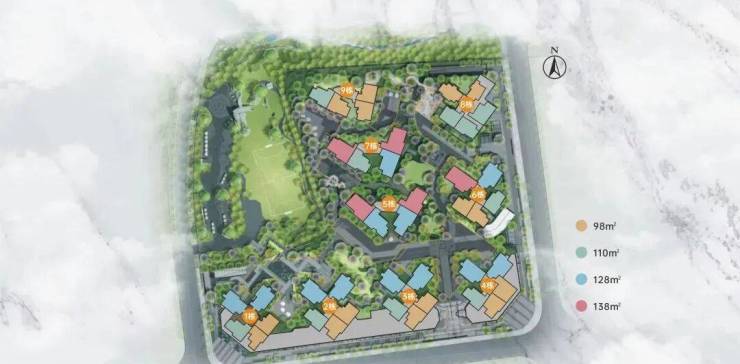 三期组团一共有9栋楼,全南向排布,依然是低密小高层,11-15层高,1、2层是商业,