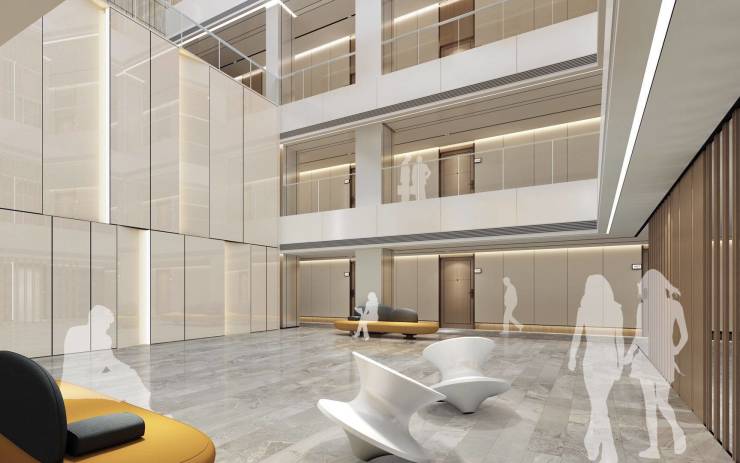独特设计:独立星级入户大堂+约25米高挑空中庭设计、360°环廊的公区打造,创变酒店式的舒适体验