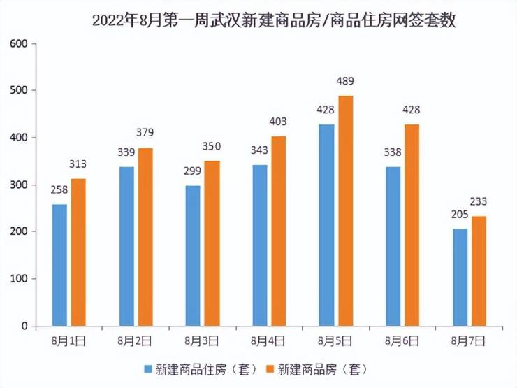 当周武汉市场新建商品房成交备案2595套,环比下降约23%,同比下降约25%;面积约28.19万平方米,环比下降约26%。其中,新建商品住房成交备案2210套,环比下降约15%,同比下降约26%;成交面积约24.82万平方米,环比下降约16%。单日成交方面,8月5日较高,商品房成交套数为489套。