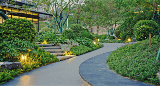 流水、跌瀑、山石、幽径、亭台等共同构筑的庭院,为居者营造出静谧雅致的休闲环境。