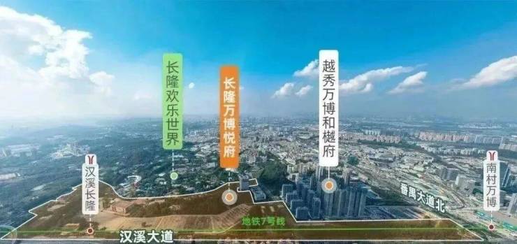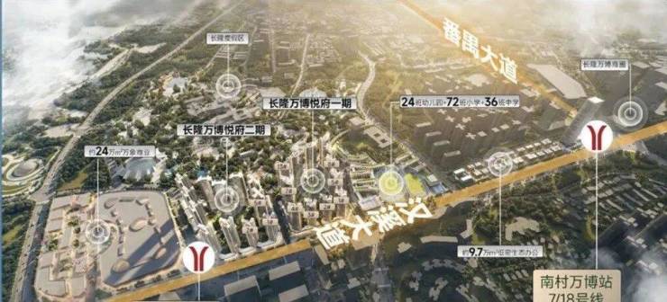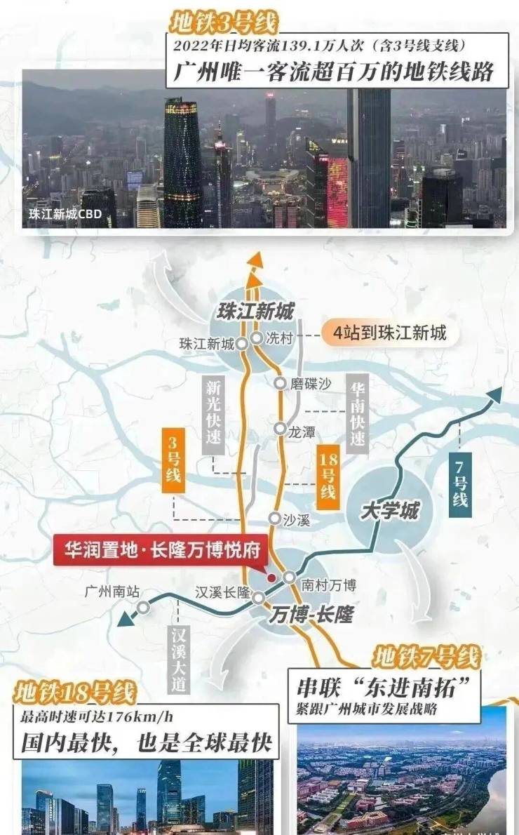 地铁:3/7号线汉溪长隆站(步行8分钟)、18号线南村万博站(1.2公里),30分钟直达白云机场、深圳前海。