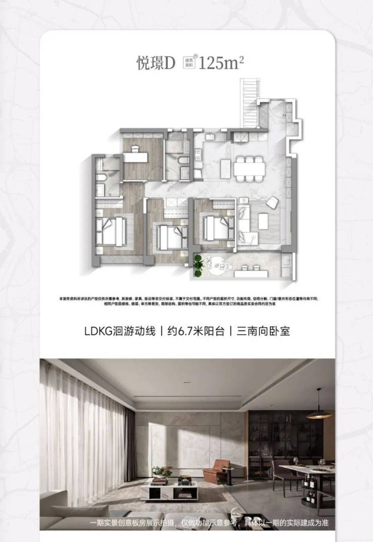 亮点:三南向卧室、6.6米双面宽阳台、LDKG一体化设计、主卧270°飘窗。