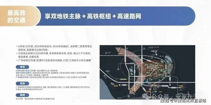 畅行】交通便利决定人群聚集双地铁主脉|1高铁+2地铁+3高速项目靠近地铁6号线【光明大街】站(已开通)直达福田,地铁13号线(在建)连接光明与深圳湾口岸。龙大高速、南光高速两大免费高速可快速通达全城。广深港高铁光明城站往返深圳北、福田便捷,赣深高铁及未来的莞深城际也在此交汇。