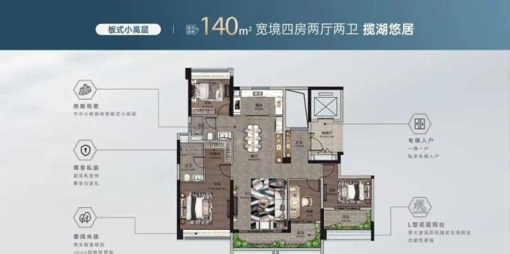 小高层140㎡南向板式阔境大四房