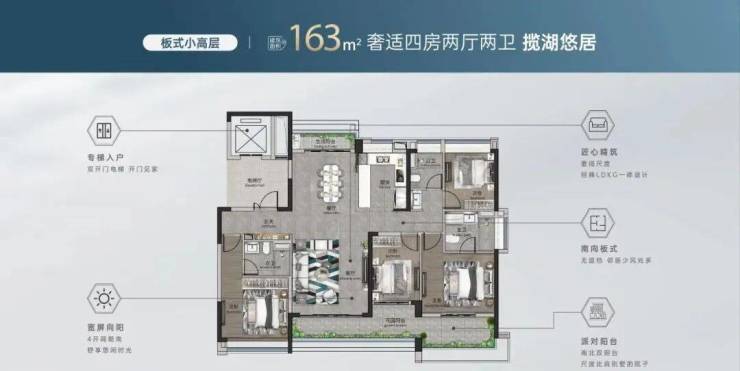 ✅南向板式: 专梯入户小高层,一线湖山瞰景