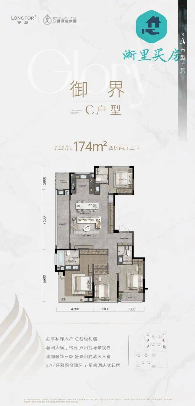 独享私梯入户 总裁级礼遇奢阔大横厅格局 双阳台瞰景视界