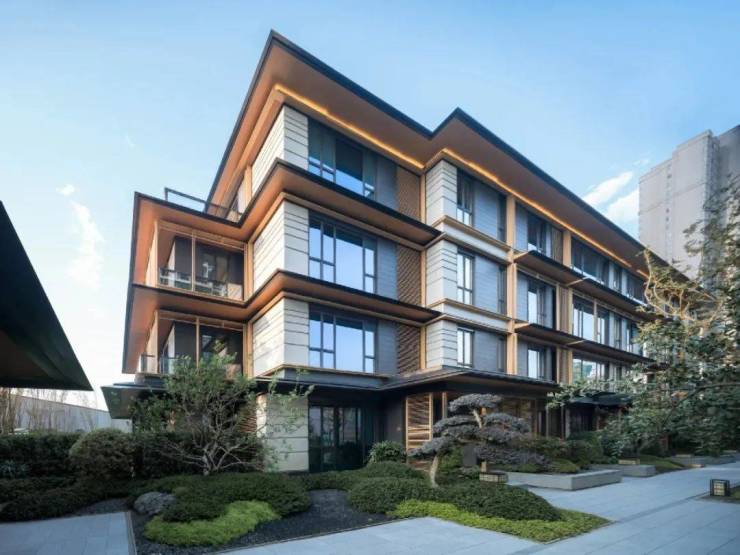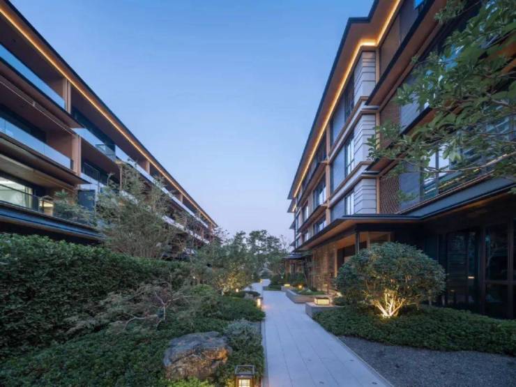 叠拼别墅也延续了绿城的美貌,从基座,墙面,阳台、围栏到线条,无论是配色还是结构,有新宋式的味道又有实用的考究。