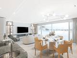约 173㎡的空间里,布局 5 房 4 厅 7 卫、2 保姆房、2 车位与庭院泳池,使用面积在 920m² - 1410m²。一层客厅与餐厅畅连庭院,泳池景观尽收眼底,长辈房与客卫贴心设计;
