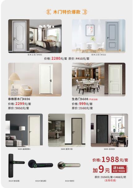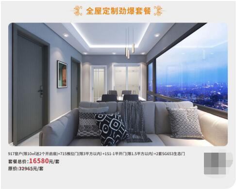 917窗户+715推拉门+1S1-平开门+2套SG653生态门:套餐总价16580元/套(原价32965元/套)