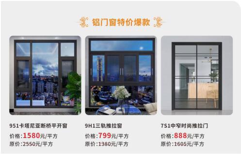 9H1三轨推拉窗;活动优惠价只需799元/平方(原价1380元/平方)